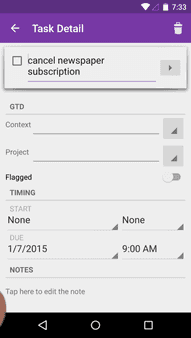 With the quick entry panel you can quickly add new thoughts to your inbox without having to open the app. Just add the FocusGTD quick enry widget to your home screen and you are all set!